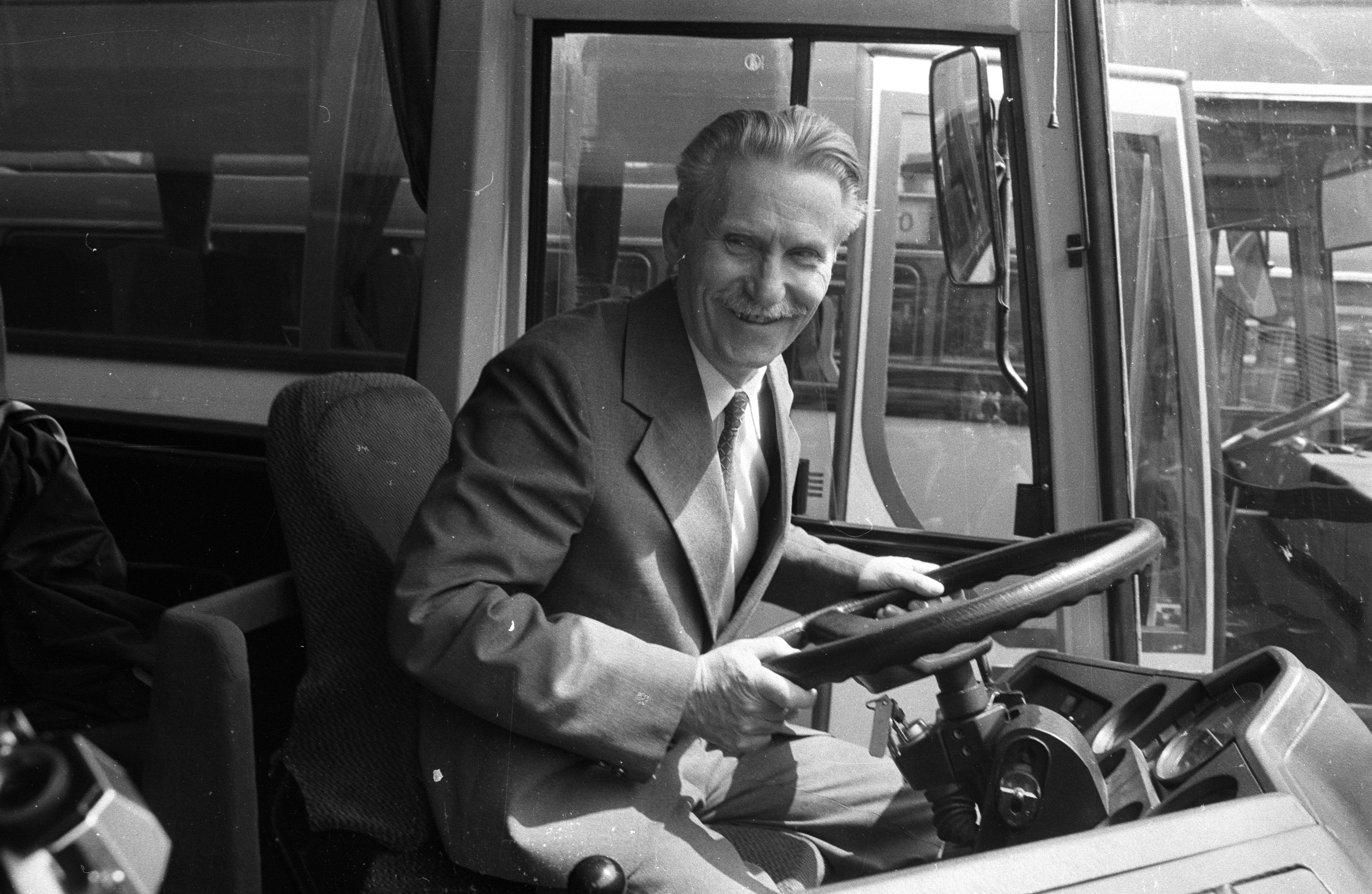 Lázár György az Ikarus mátyásföldi gyártelepén (1986).