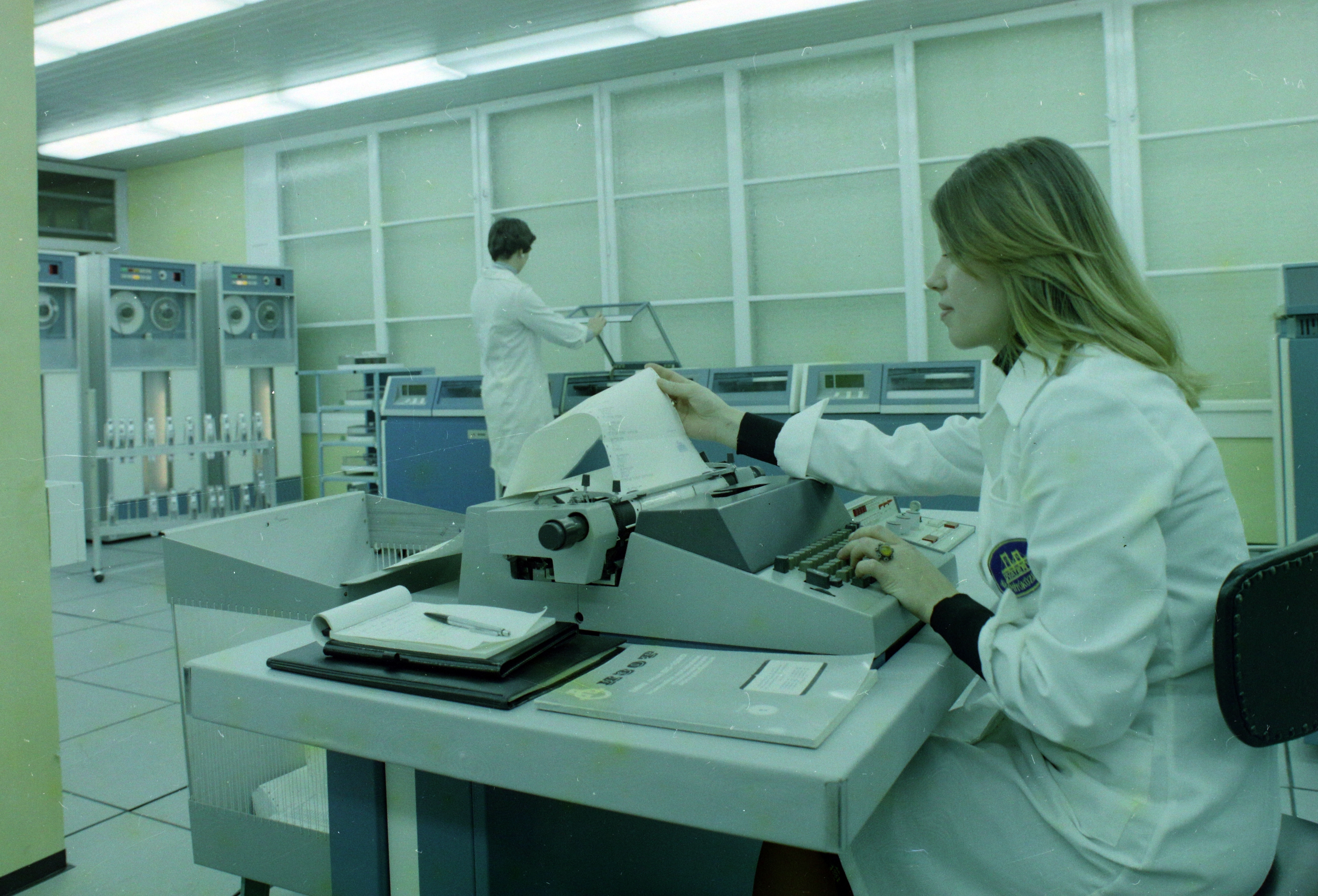 Az UVATERV számítóközpontja bolgár gyártású R20-as számítógépekkel (1977).