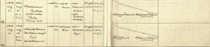 Jelzet: MNL TML XXXIII. 82 – halotti anyakönyv – 179., 180/1919. – Magyar Nemzeti Levéltár Tolna Megyei Levéltára, Külön intézkedéssel levéltárba utalt iratok, Paks község iratai – Eredeti, kézzel írt, aláírással.