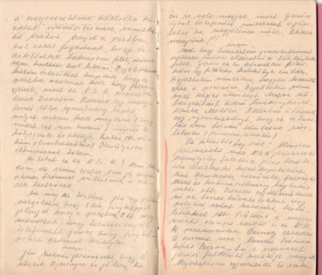 Szalai községvezető a főkolompos. Ő bizony nem hagyja a Gál üzletét és sok egyebet, mert én a párt ellen dolgozom. Tiszti gyűlés! Felkérem a tisztségviselő testvéreket arra, igen nagy öröm volna számomra, ha megszívlelnék azon kérésemet, hogy tisztuljanak meg. Én abból a sokat hirdetett eszme megvalósításából nem látok semmit sem. Ne higgyék azt, hogy nem jön el az igazi számonkérés. Ha itt nem áll be javítás, úgy engem kérnek számon, de én biztosítok mindenkit, hogy ahol bűn van, oda az én kezem elér. Ne gátoljon és ne akadékoskodjon velem szemben senki, mert én úgyis elgáncsolom, ha nem igaz úton jár, még ha 6 éves nyilas is. Válasz semmi, de érzem, hogy most már sok ellenséget szereztem magamnak.