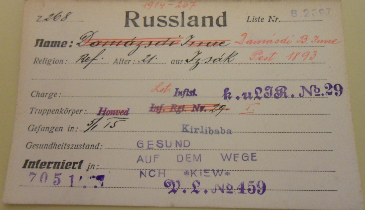 A bécsi Kriegsarchivban található orosz hadifogolylista, benne Damásdi Imre neve is