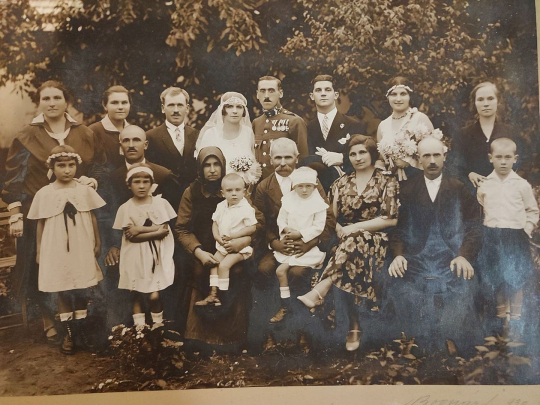 Bőti Imre csendőr törzsőrmester és Tőzsér Margit esküvőjükön a Tőzsér családdal – 1930. szeptember 1.