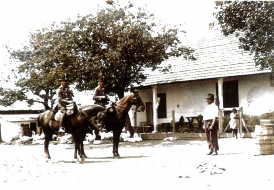 Kisújszállás, 1935. – Gátőrház, 14. sz. terep ellenőrzésén Bőti Imre csendőr törzsőrmester és Bagi Balázs csendőr őrmester járőrtársak